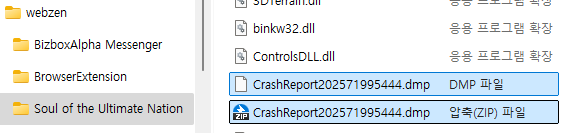(dmp ÆÄÀÏÀº Dump ÆÄÀÏÀ» ÀǹÌÇϸç, ¿À·ù°¡ ¹ß»ýÇßÀ» ¶§ ¿À·ù Á¤º¸¸¦ ÀúÀåÇÑ ÆÄÀÏÀ̹ǷΠ»èÁ¦Çϼŵµ ½ã ½ÇÇà¿¡ ÁöÀåÀº ¾ø½À´Ï´Ù. ´Ù¸¸ ¿À·ù º¸°í¿¡ ½ÇÆÐÇÑ °æ¿ì¿¡´Â ÇØ´ç ÆÄÀÏÀ» Á÷Á¢ º¸³» ÁÖ¼Å¾ß ÇÒ °æ¿ì°¡ ÀÖÀ¸¹Ç·Î °ÔÀÓÀÌ ÀÚÁÖ ÆÃ±â´Â À¯Àú²²¼´Â Á¤±âÁ¡°ËÀÏ ÁÖ±â·Î »èÁ¦ÇϽñ⠹ٶø´Ï´Ù.)